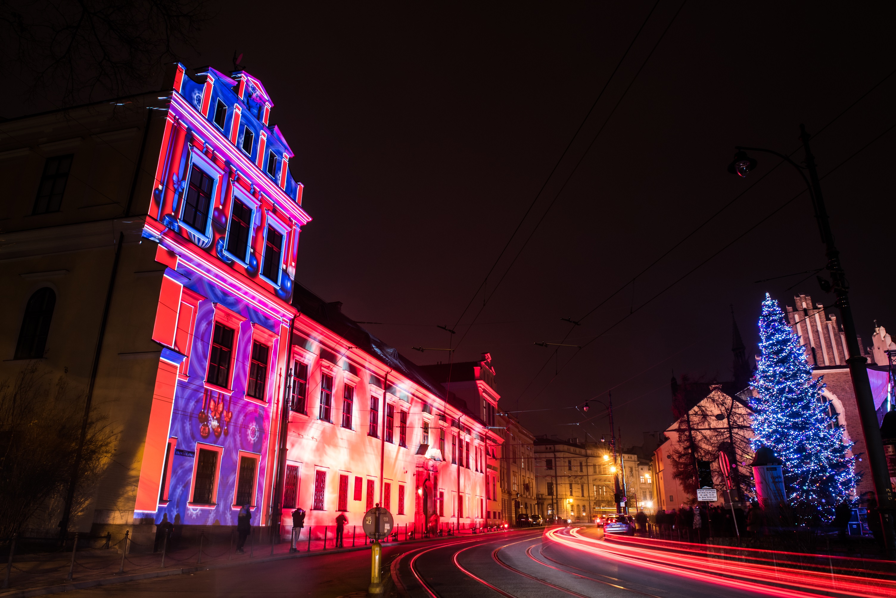29.12.2017Na ulicach Krakowa pojawiły się natomiast dwa świąteczne akcenty energetycznego holdingu. Podczas stawiania choinki papieskiej pod Pałacem Biskupim TAURON Dystrybucja iluminował budynek Kurii Krakowskiej, w którym znajduje się tradycyjne „Okno Papieskie”. Przed Świętami fasada budynku przy ul. Franciszkańskiej została pokryta kolorowymi multimedialnymi obrazami. Do ożywienia ścian budynku zostało użytych kilkanaście naświetlaczy LED oraz 2 projektory multimedialne o łącznej mocy światła aż 60 tys. lumenów. Stworzyło to efektowną kompozycję świetlną, nadając budynkowi szczególny klimat świątecznego wystroju Krakowa.