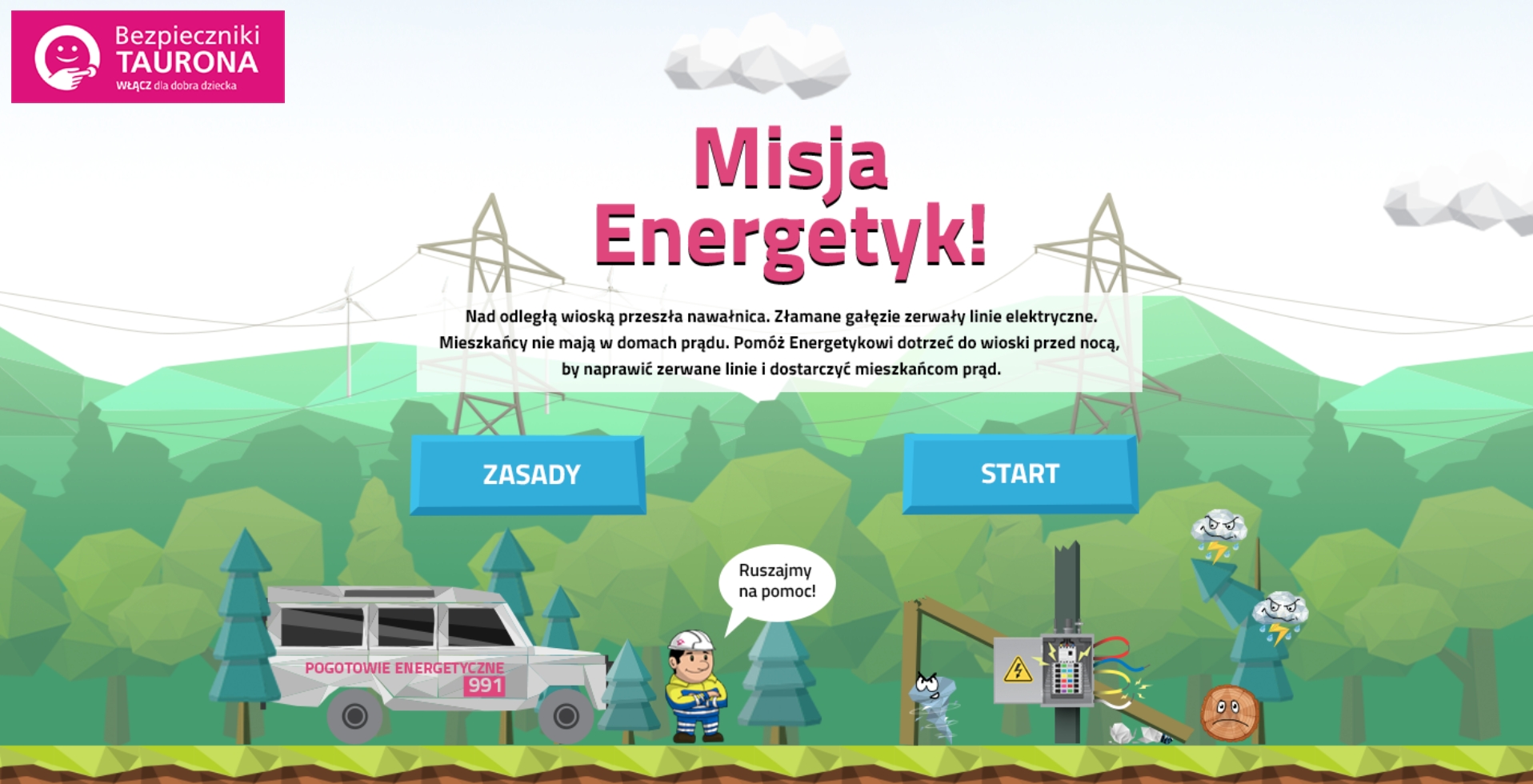 11.04.2018Gra jest oparta na gotowym mechaniźmie, który jest mniej skomplikowaną wersją „Super Mario”. Scenariusz, elementy i szata graficzna są dostosowane do tematyki działań firmy energetycznej. Akcja została ułożona tak, by zwrócić uwagę na niebezpieczeństwa, jakie mogą wystąpić po wichurze czy burzy, np. zerwane przewody czy uszkodzone skrzynki energetyczne. W ten sposób TAURON Dystrybucja przypomina zasady bezpiecznego zachowania i pokazuje dzieciom, że „prąd nie naprawia się sam”, a praca energetyka wymaga nie tylko specjalistycznej wiedzy i umiejętności, ale i znacznej sprawności fizycznej.