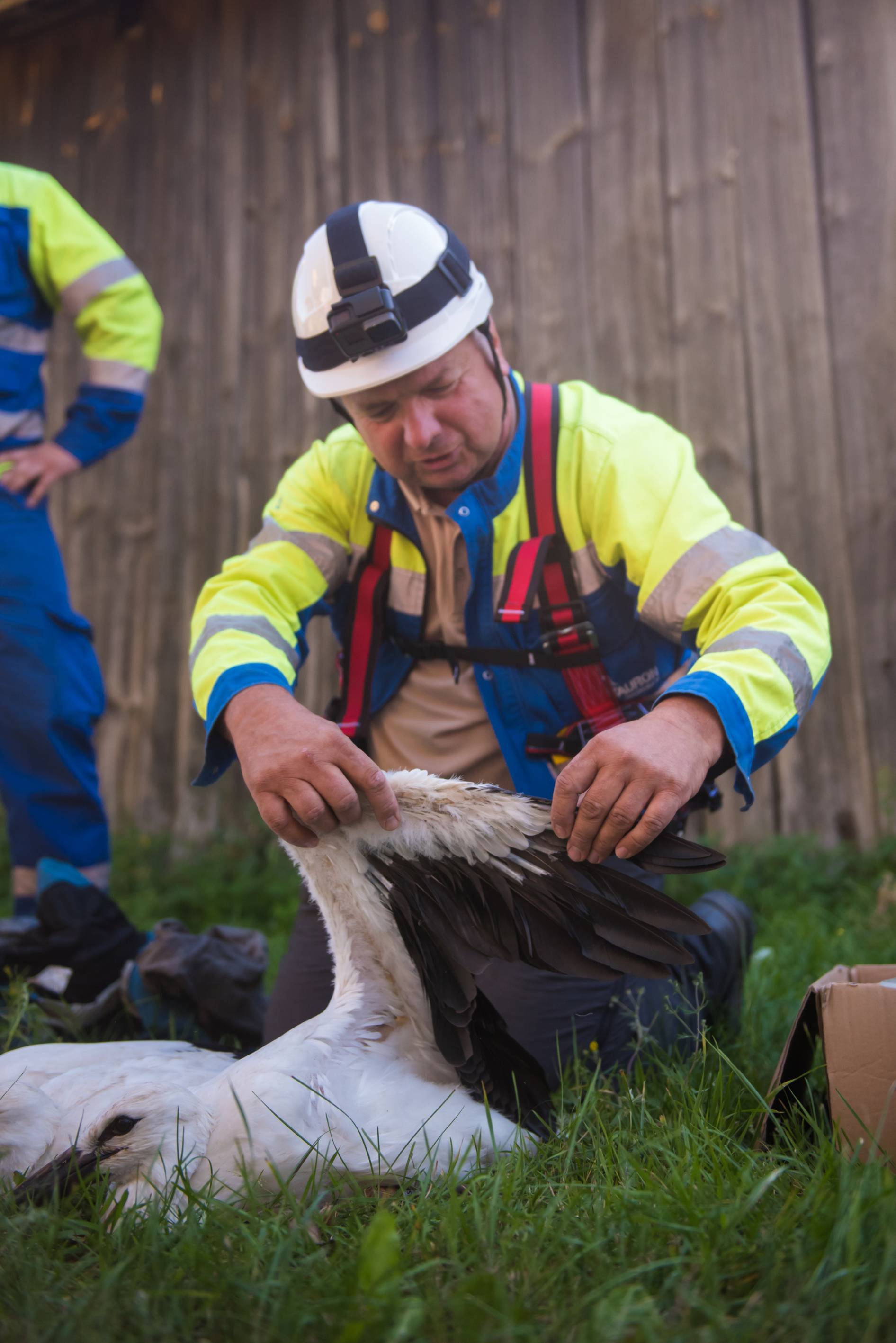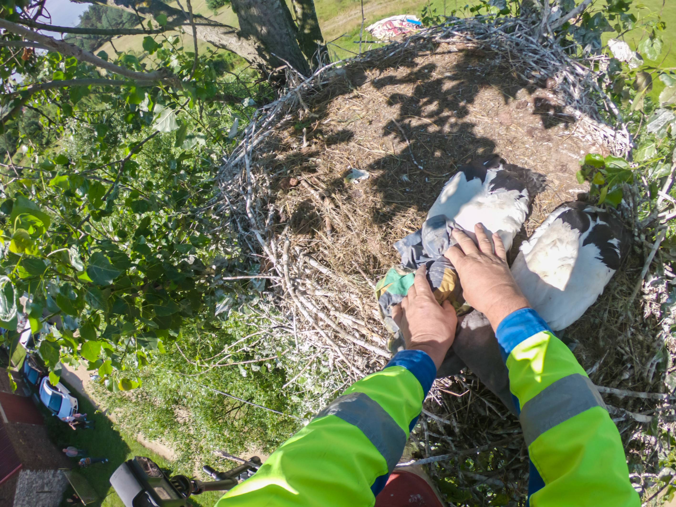 Energetycy TAURON Dystrybucja pomagają w obrączkowaniu bocianów