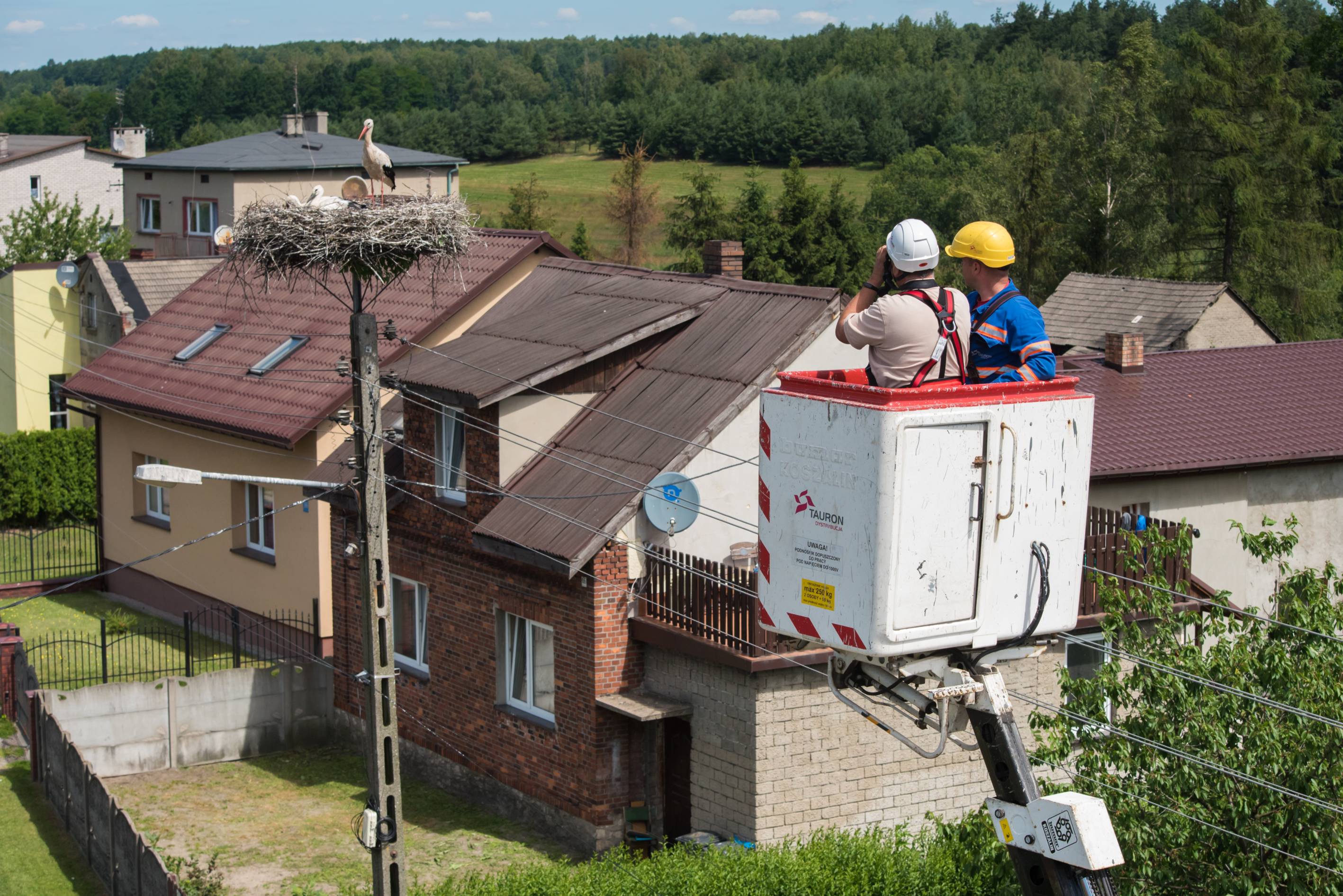 Bociany coraz częściej budują swoje gniazda na słupach energetycznych. Taka lokalizacja jest dla nich komfortowa, ponieważ chroni je przede wszystkim przed drapieżnikami. Niemniej zbyt duże gniazda, ważące nawet kilkaset kilogramów, mogą być przyczyną poważnych awarii sieci energetycznych. Bliskość przewodów zagraża także życiu piskląt. Dlatego pracownicy TAURON Dystrybucja każdego roku oczyszczają domostwa bocianów i wynoszą je na specjalne platformy, powyżej sieci energetycznej. Zapewnia to bezpieczeństwo ptakom i bezawaryjność sieci.