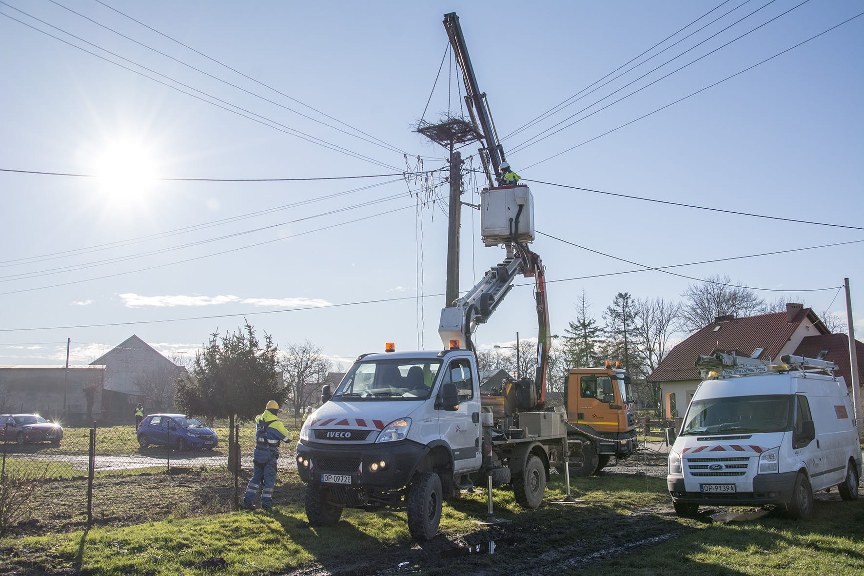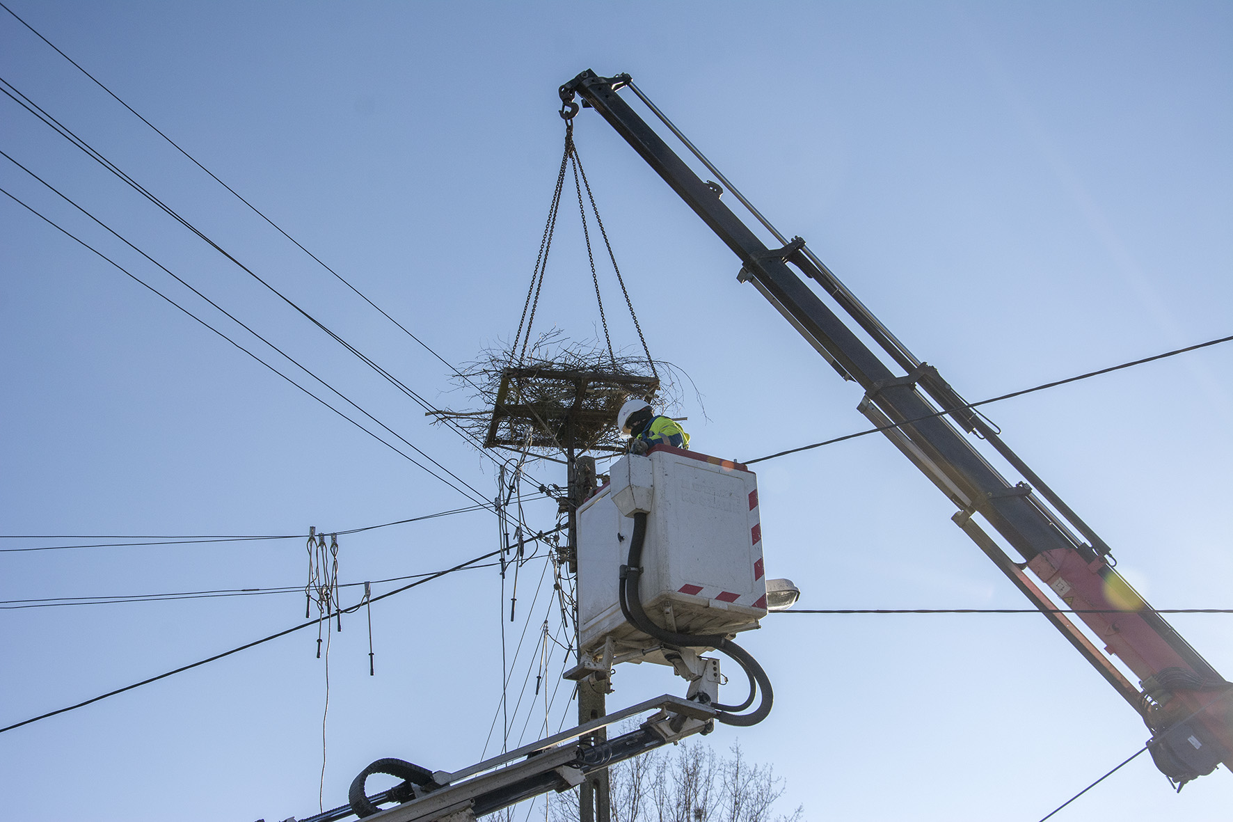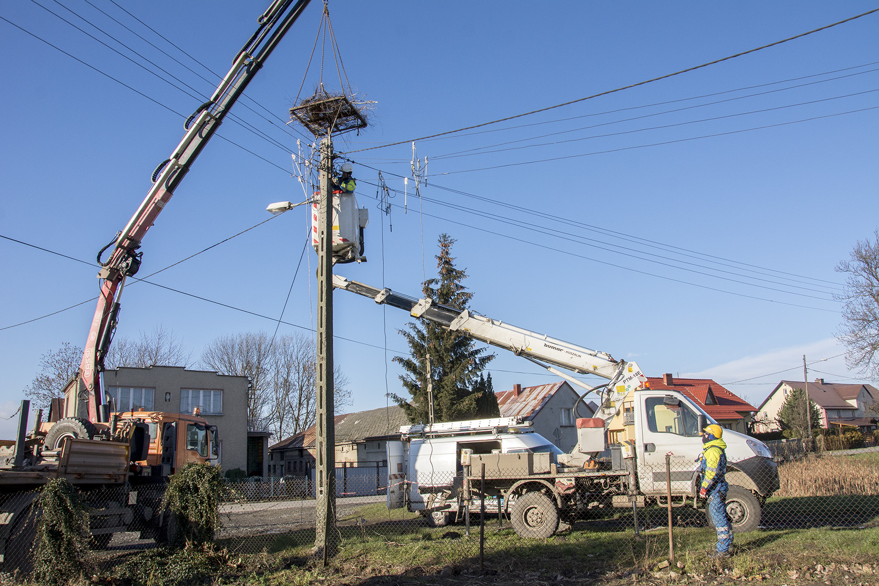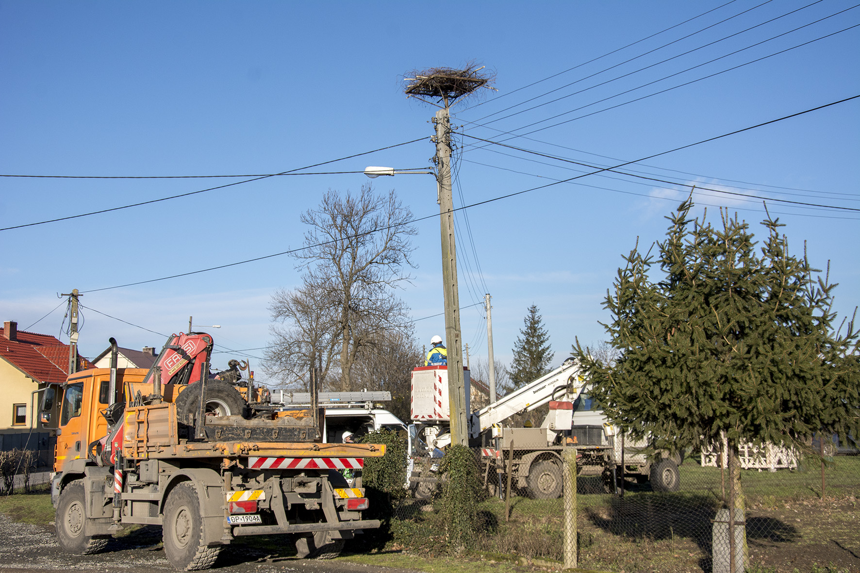 Bocianie gniazdo, budowane przez lata może ważyć nawet kilka ton. Dlatego tak ważne jest oczyszczanie ich z nadmiaru budulca, poprawianie konstrukcji i wynoszenie na specjalne stalowe platformy - ponad przewody energetyczne. Zapewnia to bezpieczeństwo ptaków i bezawaryjną pracę sieci energetycznej.