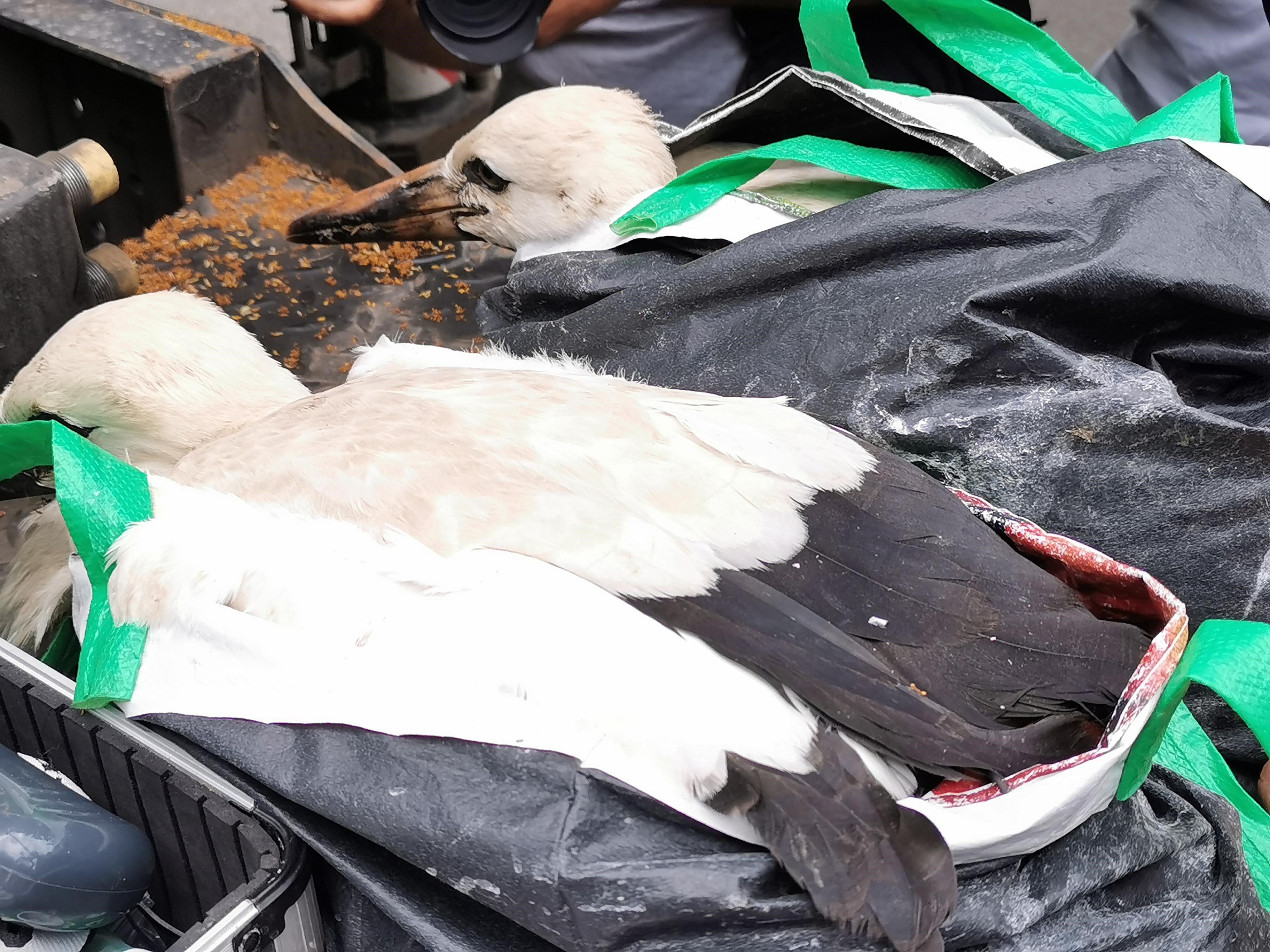 30 stycznia 2021 ok. godz. 11 odwiedzane dziś gniazdo spadło na ziemię zrywając linie energetyczną i odcinając 23 odbiorców od prądu w godz. 12-16.30. Gniazdo nie miało platformy. Spadało w efekcie niekorzystnych warunków atmosferycznych, ulegając całkowitemu zniszczeniu i wymagało kompletnej odbudowy. 12 lutego energetycy z TAURON Dystrybucja upletli podstawę gniazda wspólnie z ornitologiem Stanisławem Czyżem. Materiał, czyli grubsze na podstawę i cieńsze do wplecenia gałęzie do budowy gniazda, dostarczyły lokalne władze. Upleciona konstrukcja przyciągnęła ptaki i wiosną pojawiła się para. Stabilny fundament gniazda upleciony przez energetyków bociany nadbudowały dodatkowym materiałem - giętkimi gałęziami, witkami po obwodzie oraz centralnie darnią i suchymi źdźbłami traw. Teraz na gnieździe jest para dorodnych młodych, których losy - również dzięki założonym obrączkom będzie można śledzić w kolejnych latach.