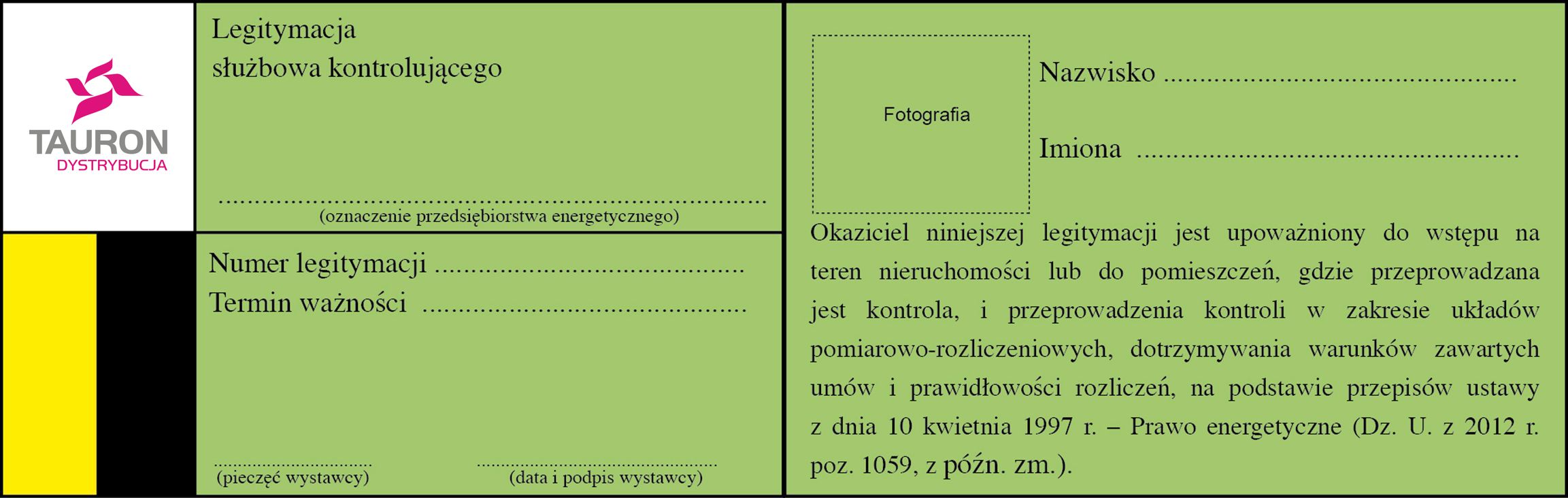 27.01.2022Osoba, która będzie używała legitymacji o powyższym numerze nie jest pracownikiem / przedstawicielem TAURON Dystrybucja.