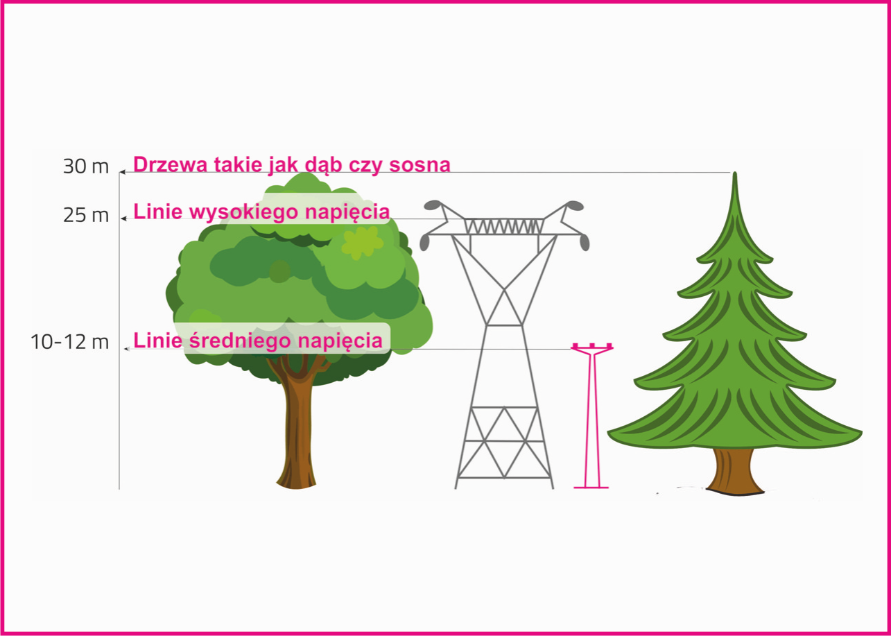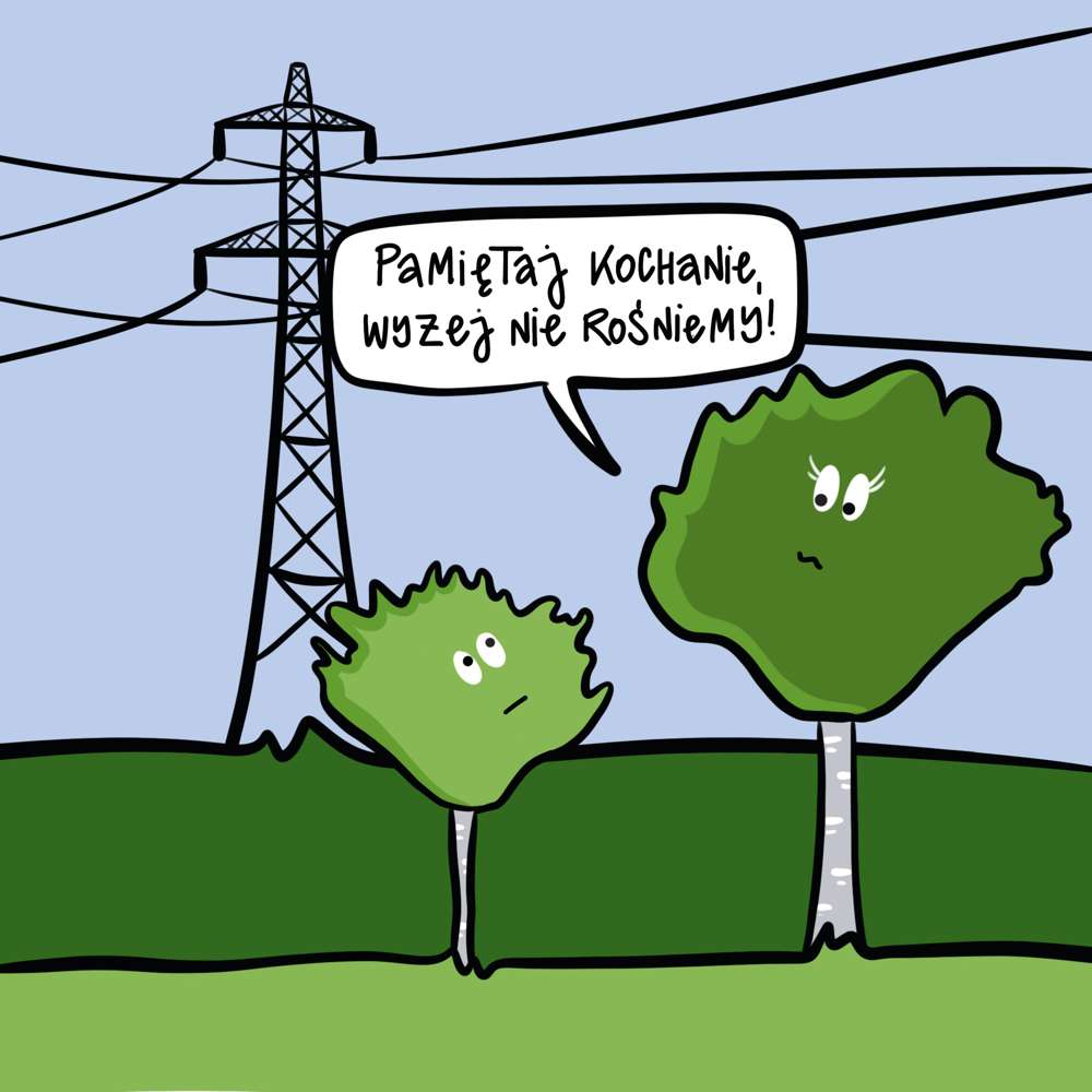 TAURON Dystrybucja przypomina, że sadząc drzewa należy zachować minimum 2 metry odległości od słupów i linii energetycznych (w zależności od rodzaju sieci). Dzięki temu można zapobiec wrastaniu gałęzi w przewody, a także uniknąć zagrożenia związanego ze zrywanymi przewodami energetycznymi przez gałęzie drzew.