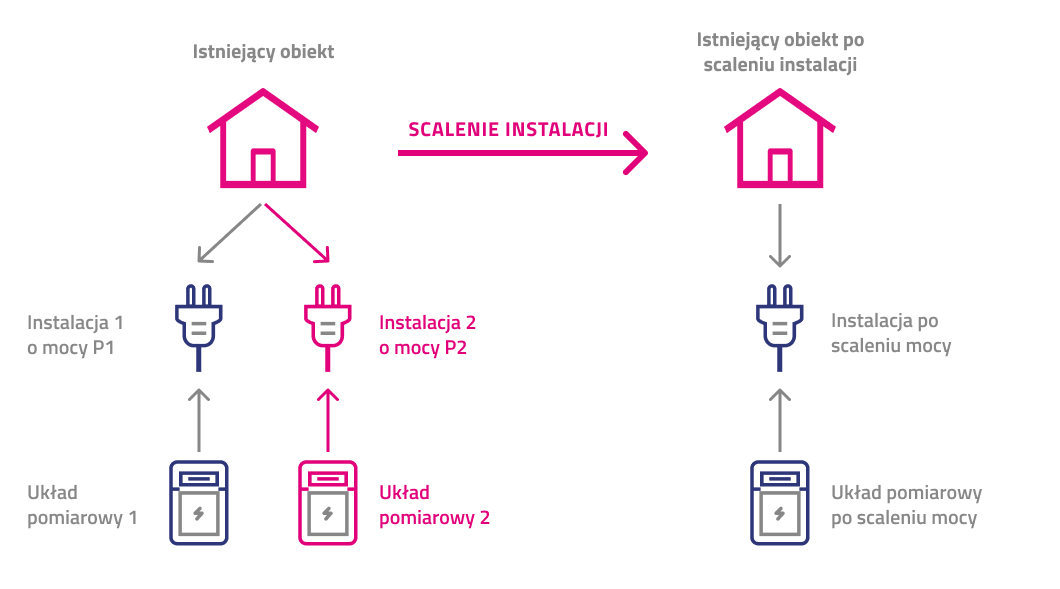 Możesz scalić instalację tylko w obrębie tego samego przyłącza. Oznacza to, że możesz wystąpić o scalenie instalacji: